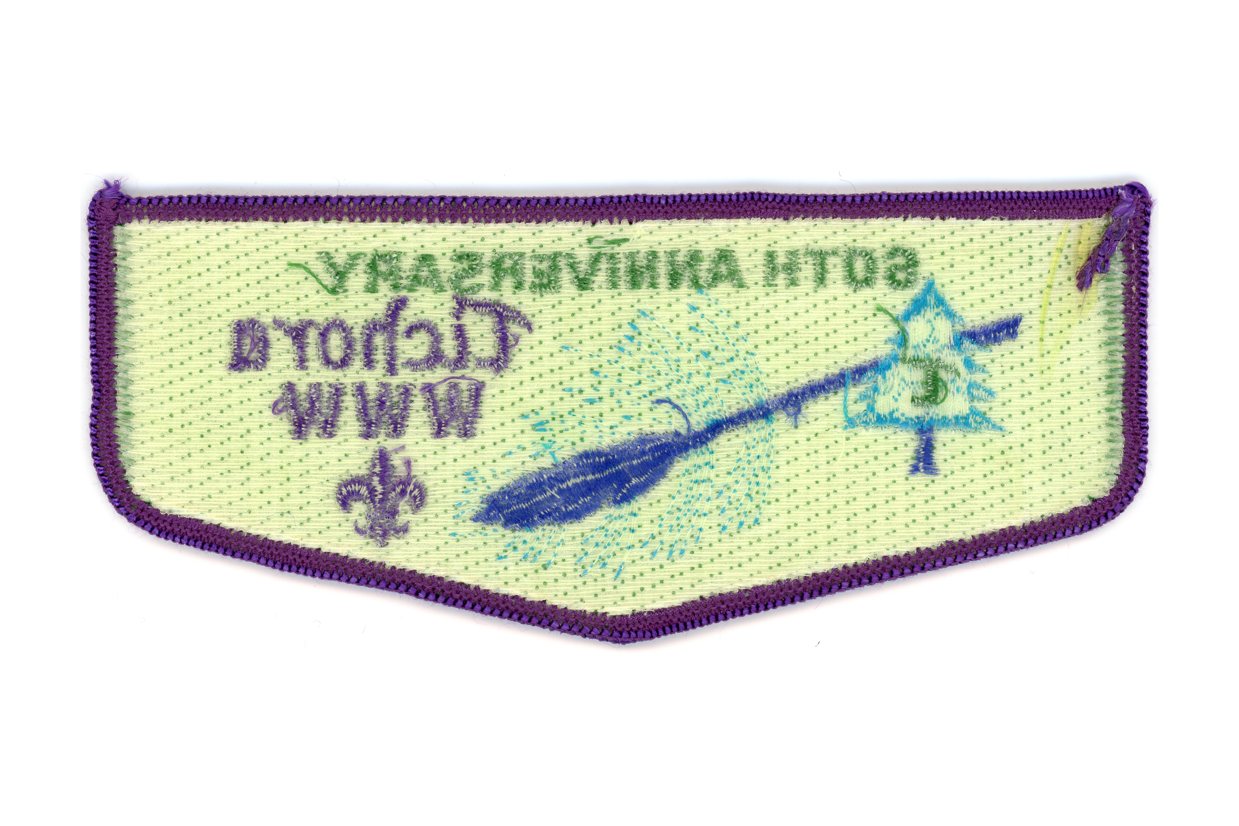 Segment for camp patch with light green WWW and arrow.