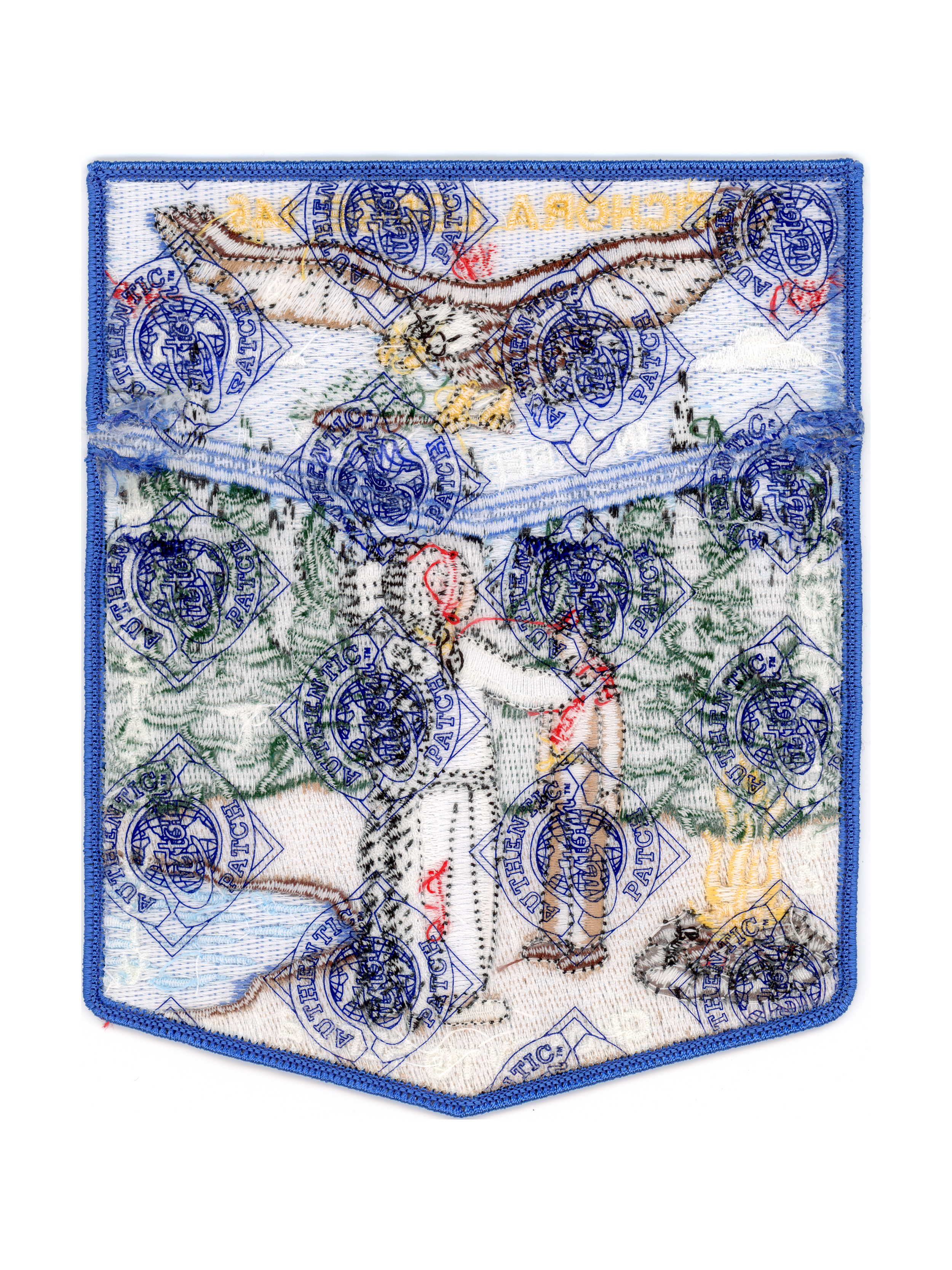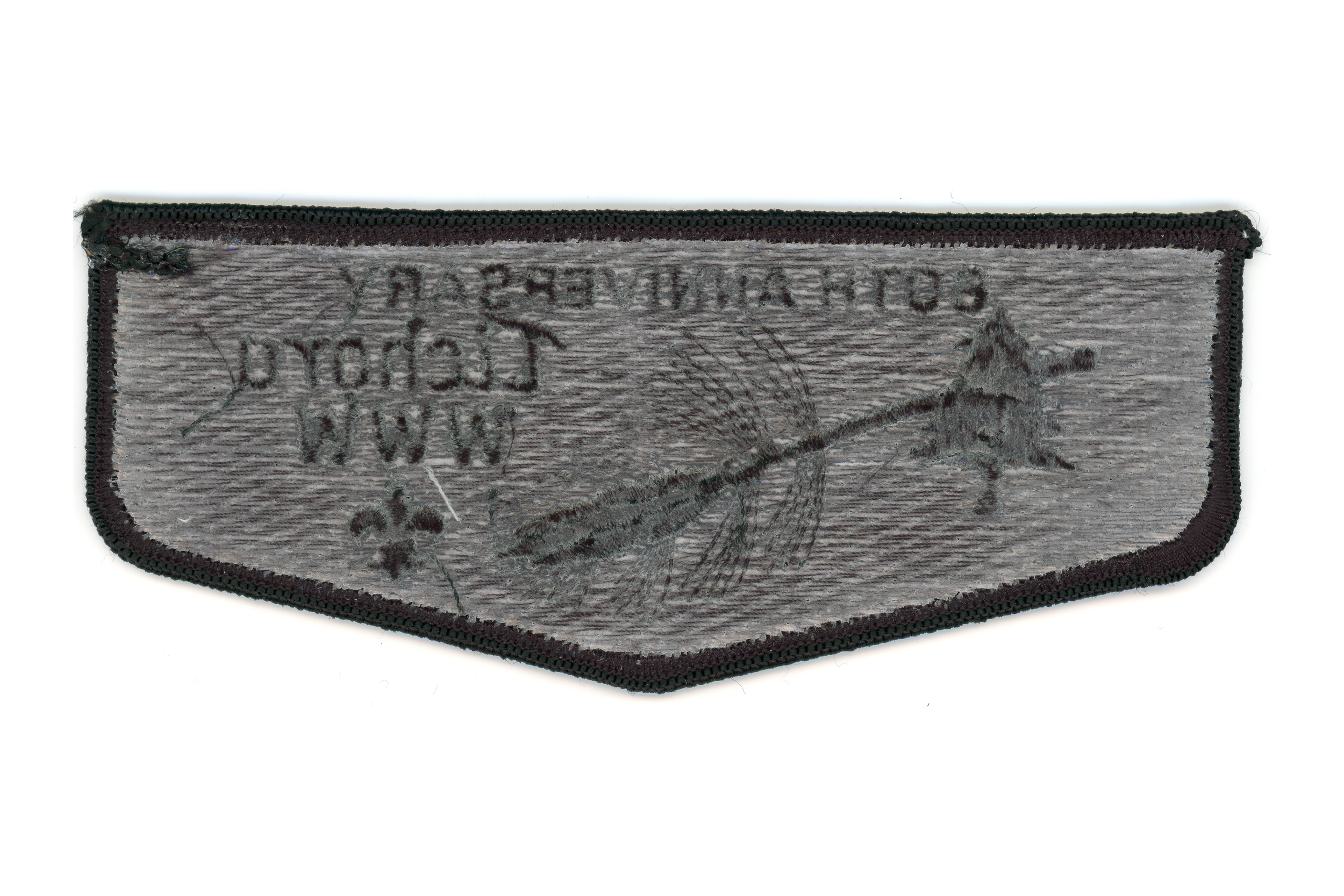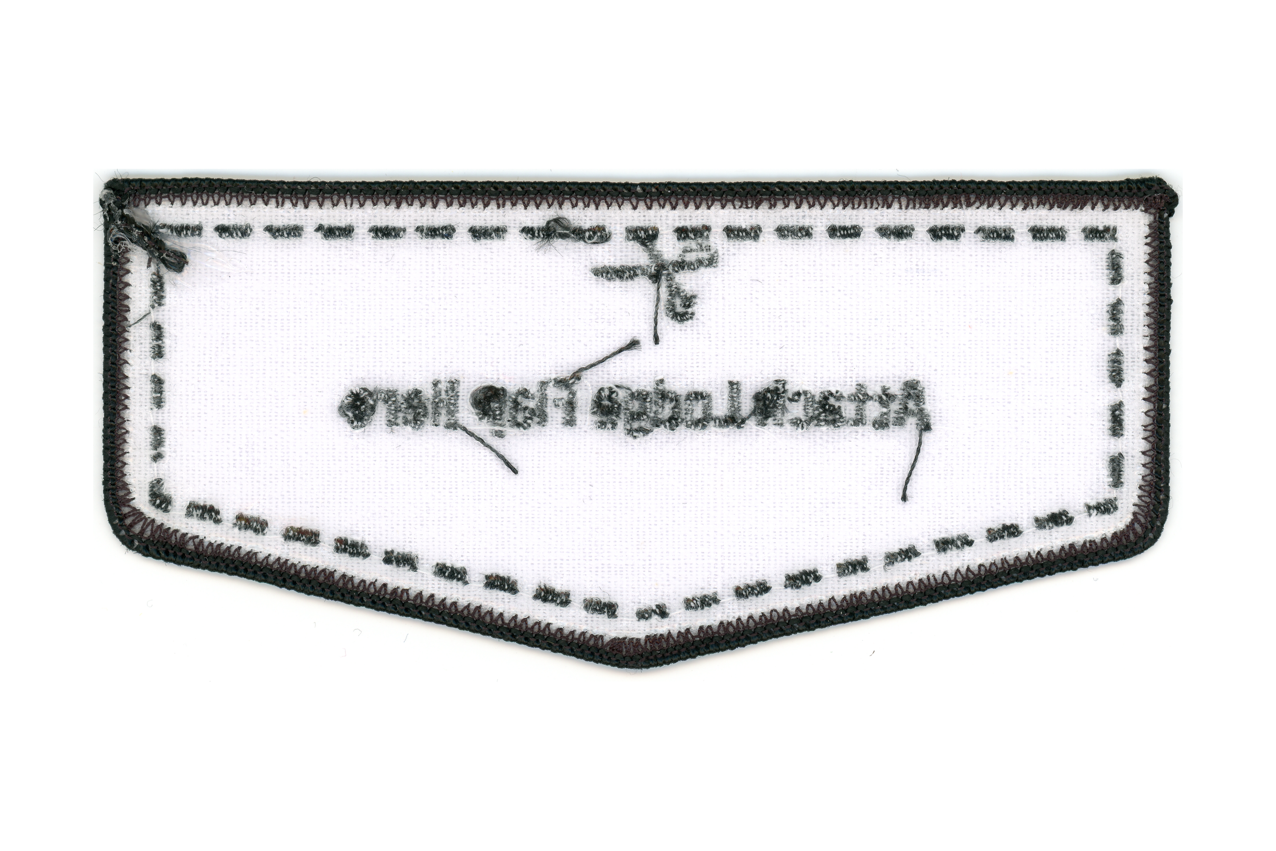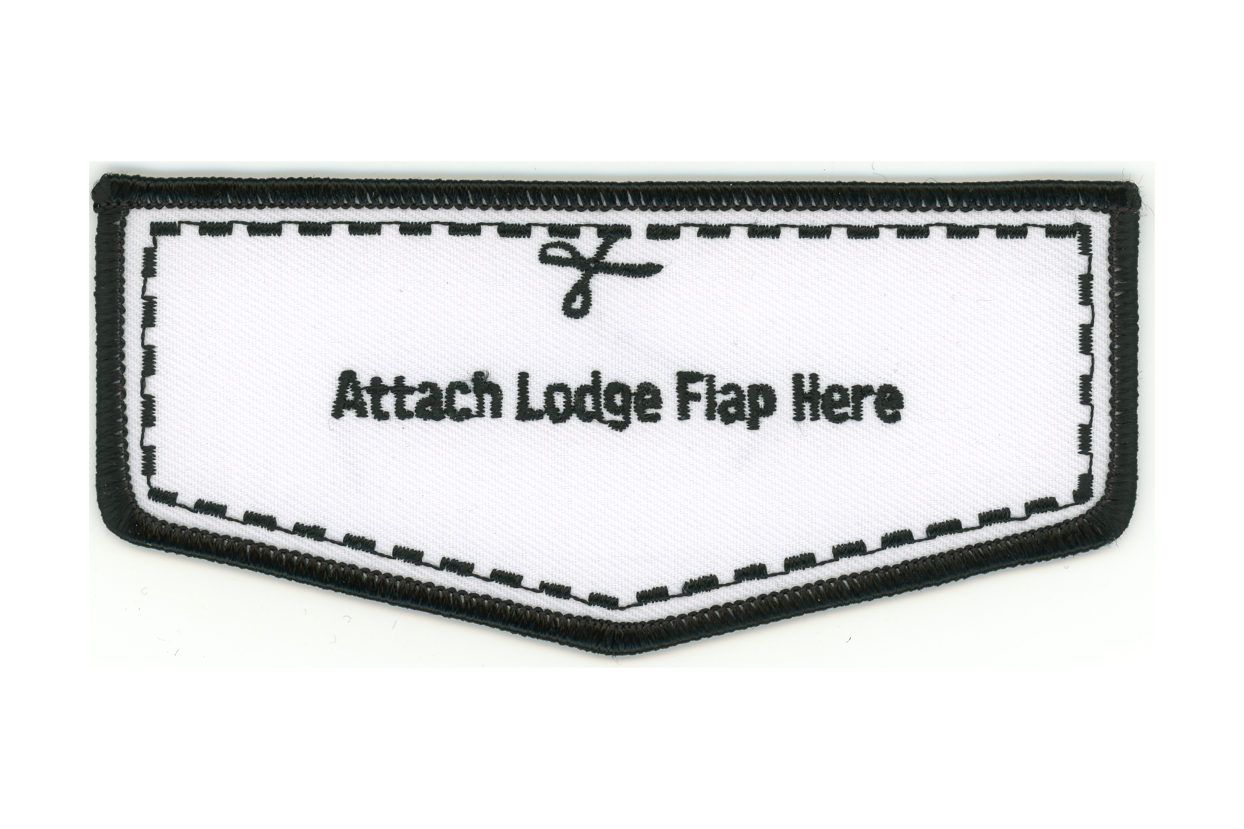 “Attach Lodge Flap Here”, Spoof private issue from lodge member Will Kiefer. Twill background.