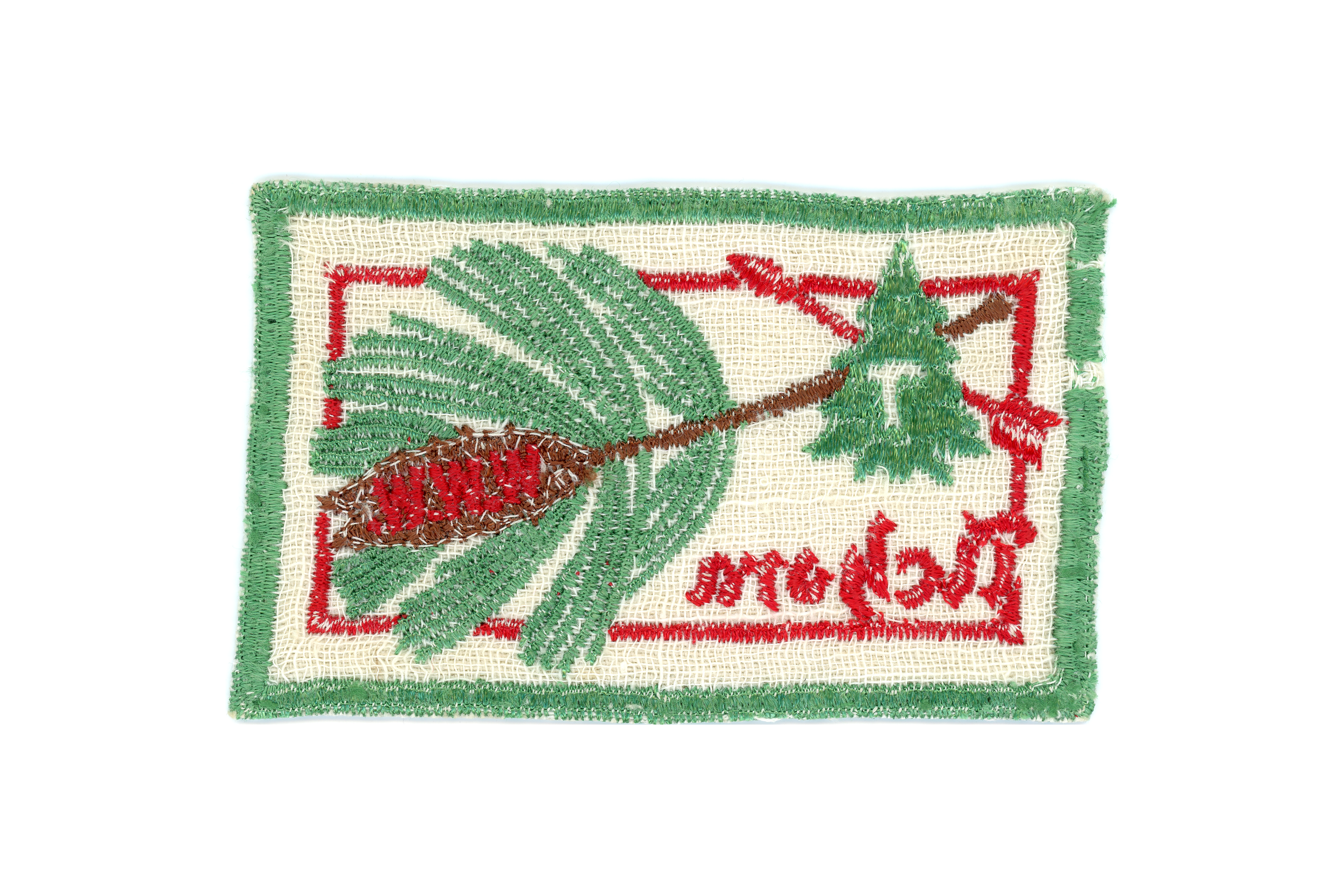 Pictured in the Wabiningo Emblem Handbook 1952, rectangle, DBR pine cone, no WWW.
