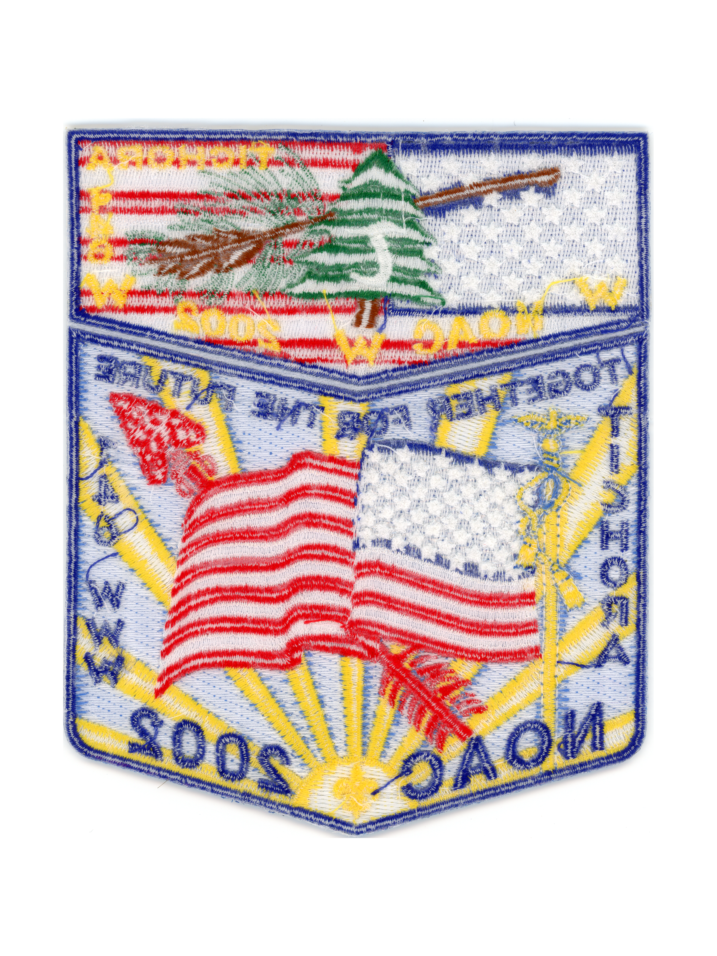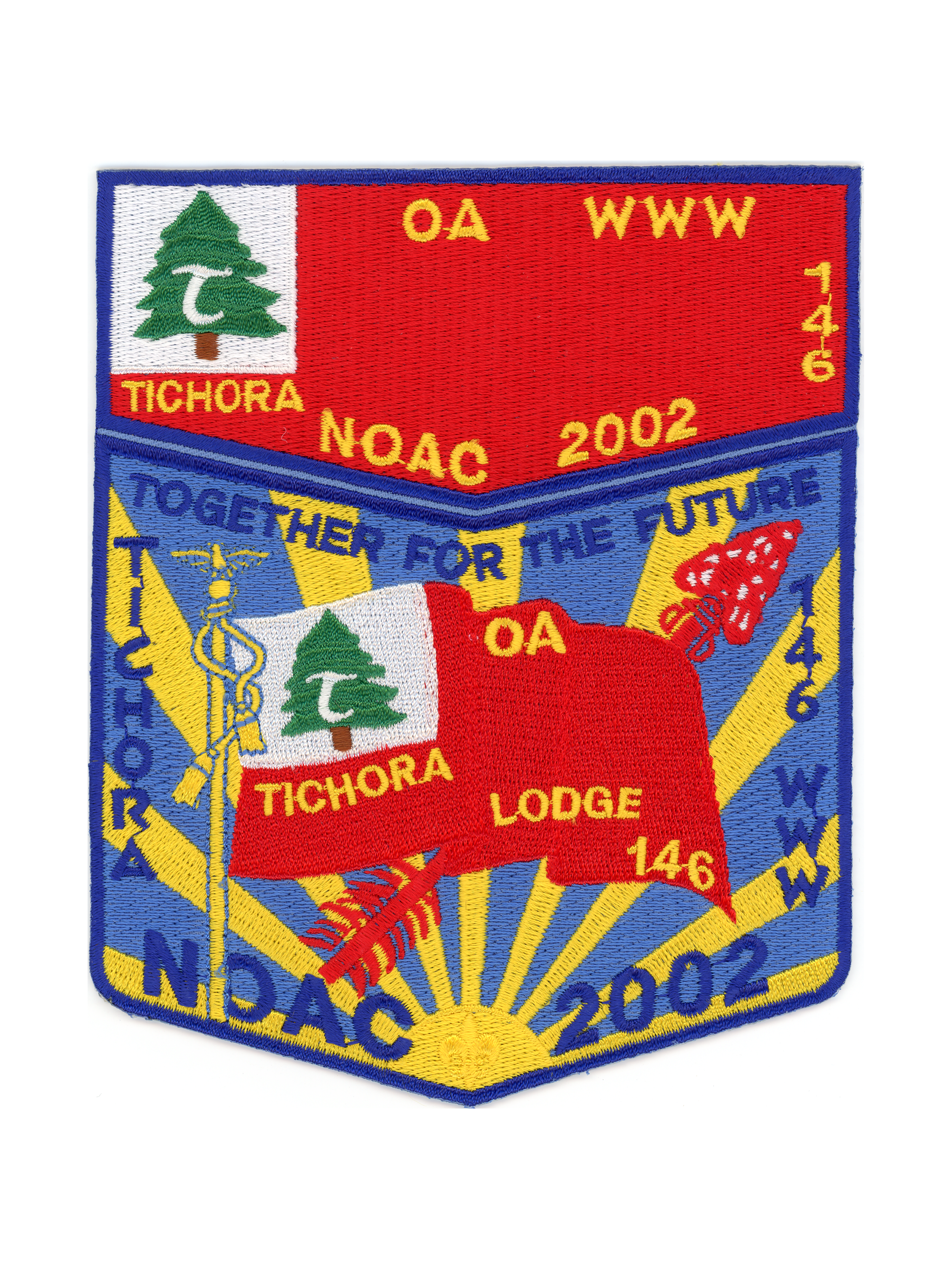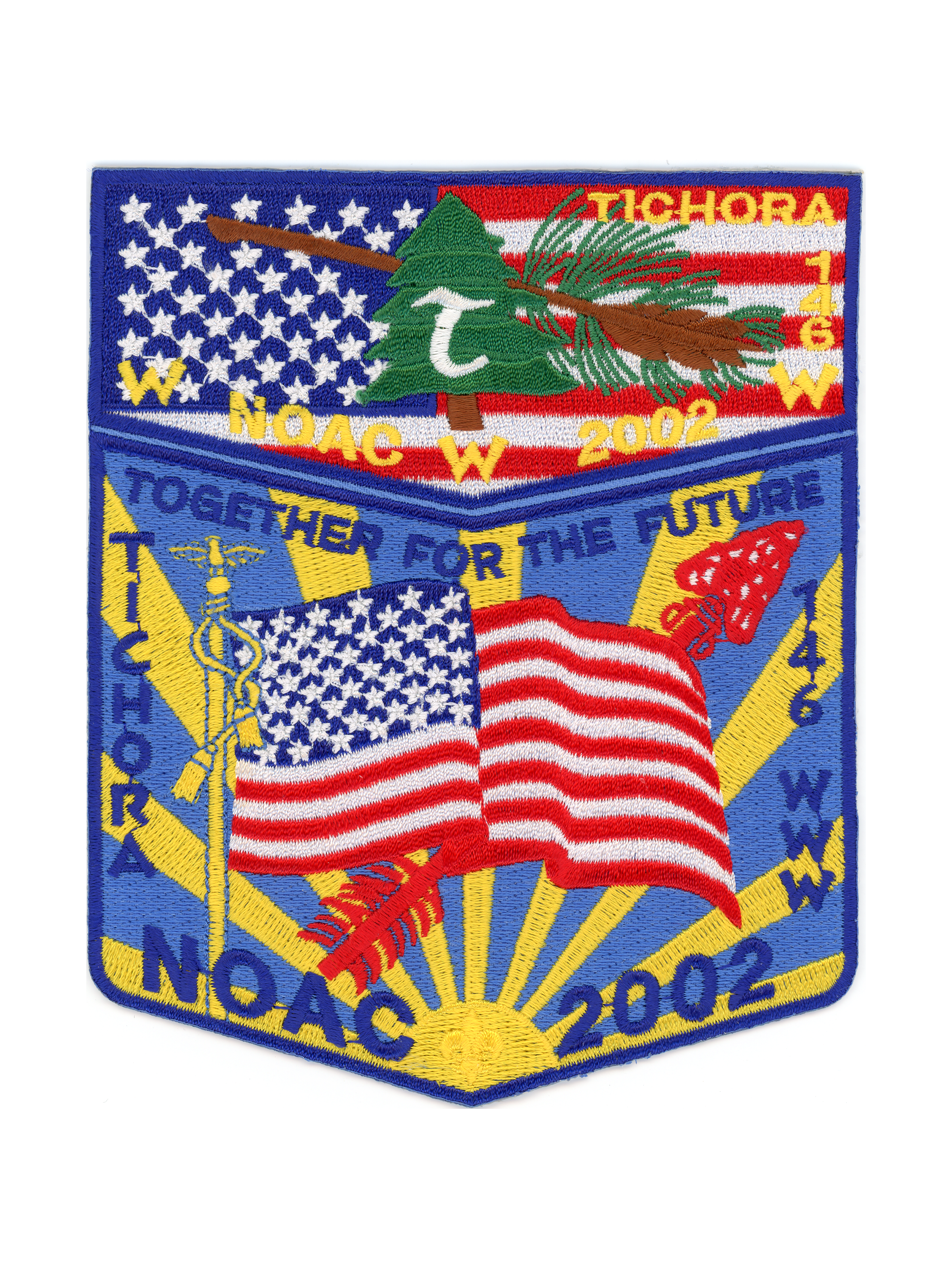 NOAC 2002, Tichora flag, uncut made to look like two part set.