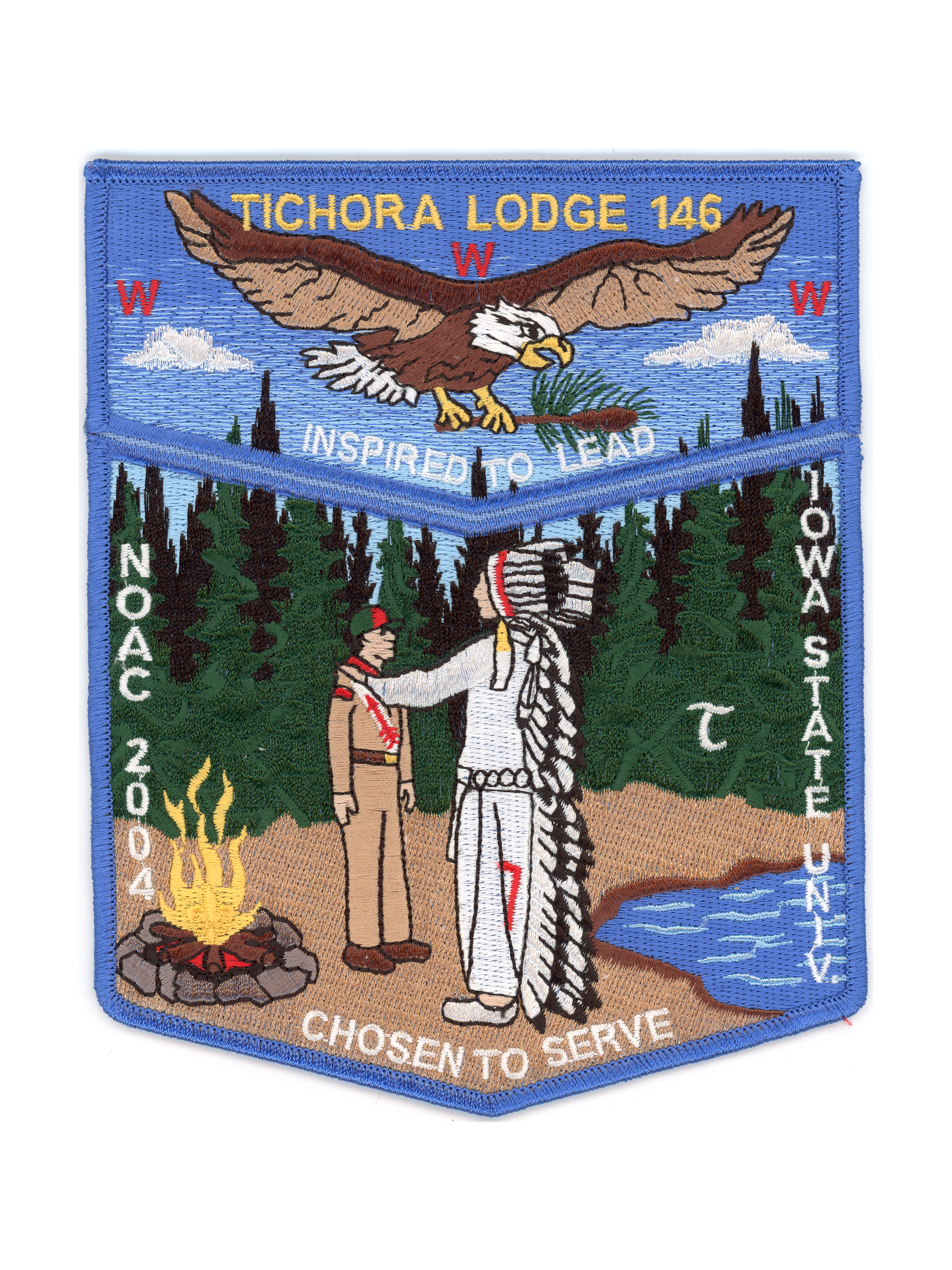 Merger: In 2006, Tichora Lodge merged with Chemokemon Lodge (Sinnissippi Council) following the consolidation of their respective councils into the Glacier's Edge Council.